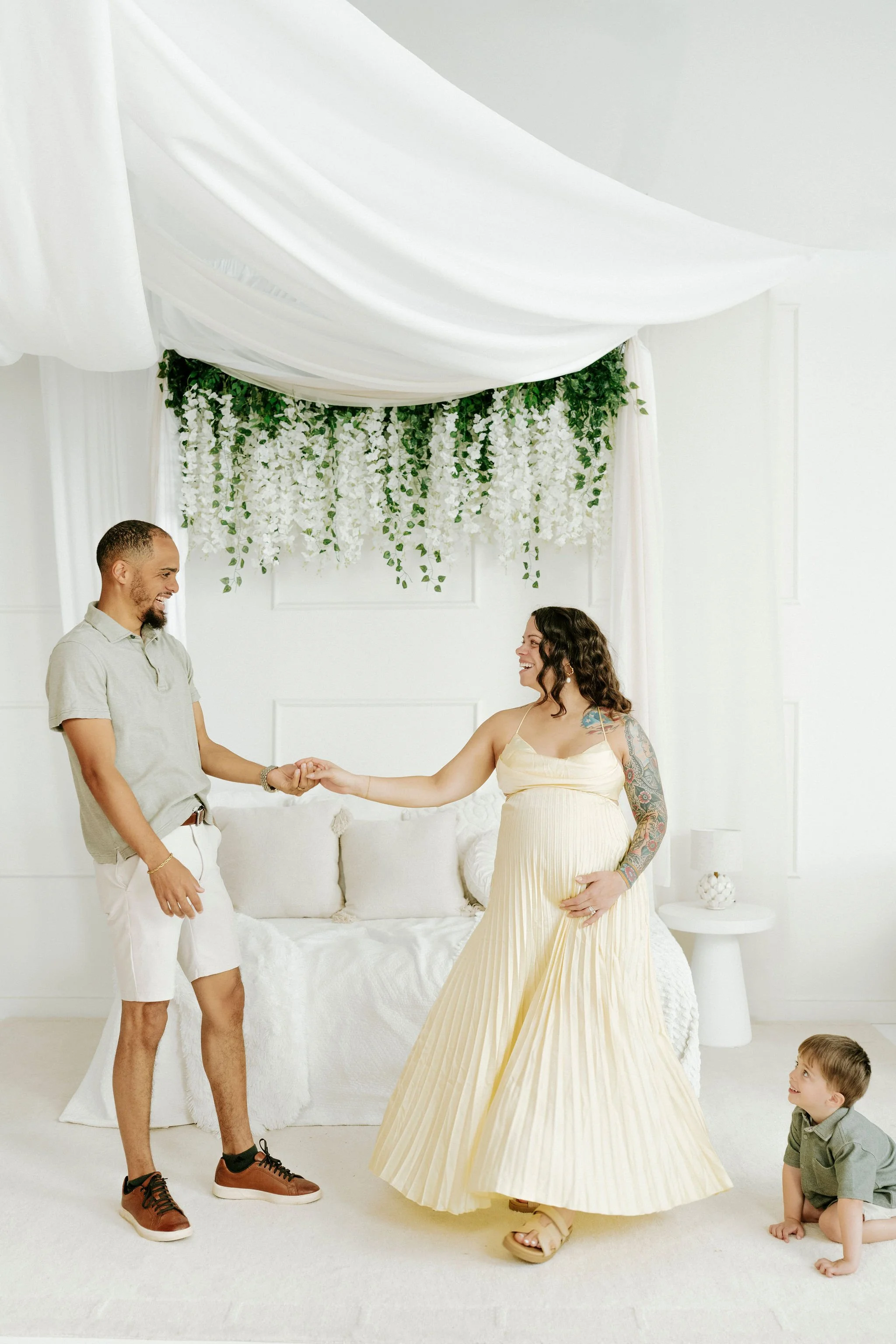 Unsure if a studio session is right for you? We get it — when you hear the word ‘studio,’ it’s easy to imagine cramped, tight quarters with roll-down backdrops and limited working room, but that’s not what you’ll find here! The studio was intentionally designed to redefine the studio experience in a way that makes pictures effortless and enjoyable. No windy messy hair, sweaty faces, or rescheduling countless times due to rainy days — the studio combines the comfort and space you need to bring together effortless, candid imagery with ease and confidence. Culminating a strong influence of hospitality, the subtle touch of luxury service, and the thoughtful, curated details you’d expect from your favorite interior design influencer, our studio has been built from the studs out with a primary focus on client comfort and seamless photographer workflow. With generous room to move, a wider variety of versatile shooting options for capturing images you love, and reliable, consistent lighting throughout, every inch of the studio is carefully crafted to support creativity, comfort, and stunning results.